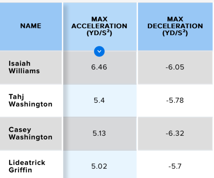According to the GPS tracking data he accelerated nearly 20% faster than the #2WR there. So not only is acceleration not an issue for him but it’s actually a downright dominant trait for him. He was 4th in deceleration as well.