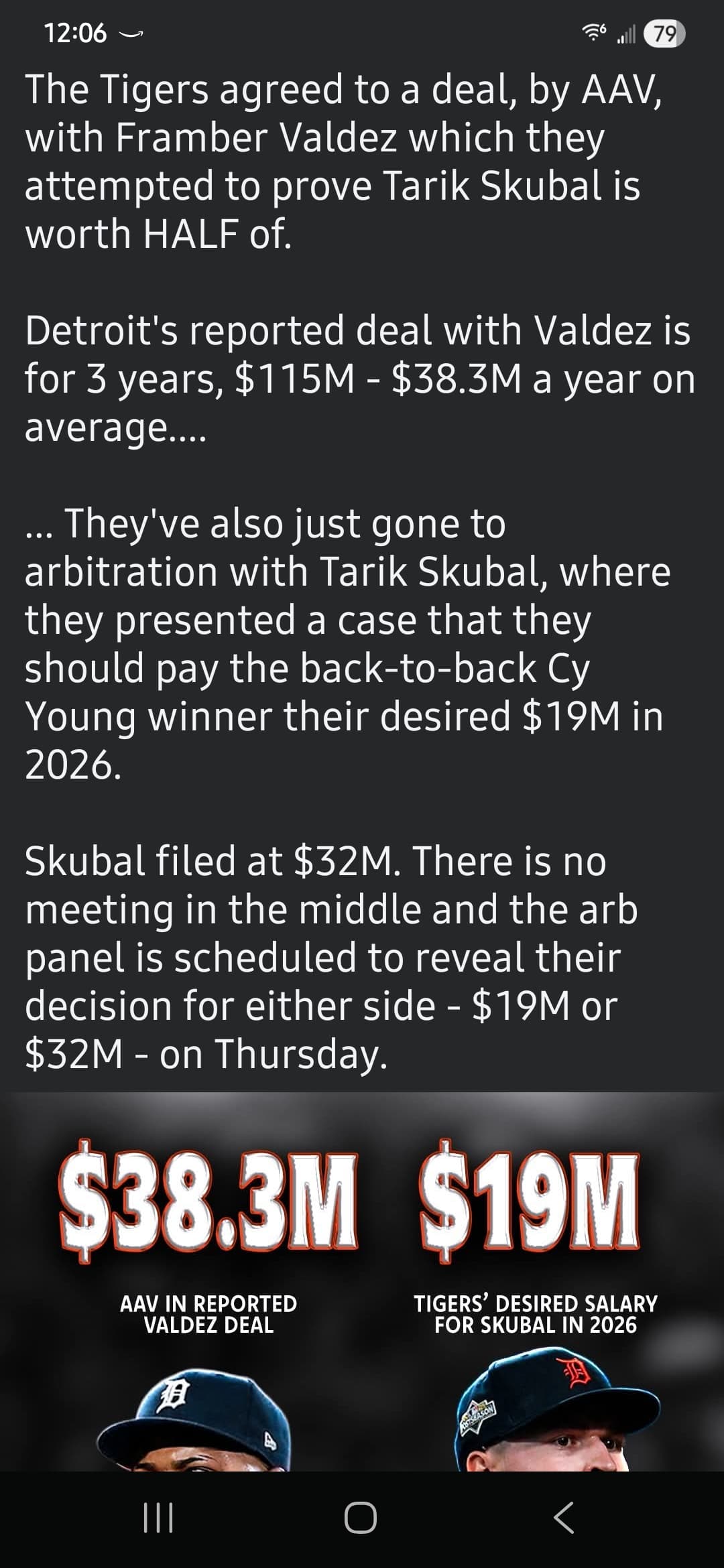 Honestly, I donât really have a take. I understand the arbitration offers and hearings are based off previous arbitration #'s but i also know the Tigers are known to be cheap. Iâm glad it worked out to keep Skubal for another year and hopefully Skubal understands that baseball is a business and has no hard feelings again the Tigers and he continues to want to be here in Detroit.