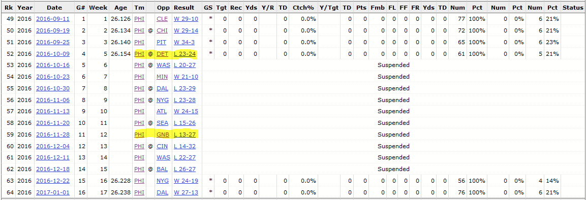 The key is to be sure you don’t do something stupid right before you play Green Bay. And here is some conspiracy level shit from something I remember previously. Lane Johnson got suspended for 10 games. With what he got suspended for, players are not typically allowed to play under their appeal. They let Lane play exactly 4 games under appeal, then he had to serve his full 10 game suspension.