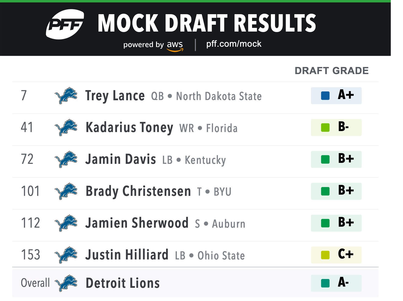 I would not be surprised if a guy like this becomes a Lion. If I had to guess, this draft will be about adding speed to the defense. And to be fair to him, I’ve seen his name pretty high up on some respected boards before these numbers came out. Wouldn’t be shocked if he is a first rounder.