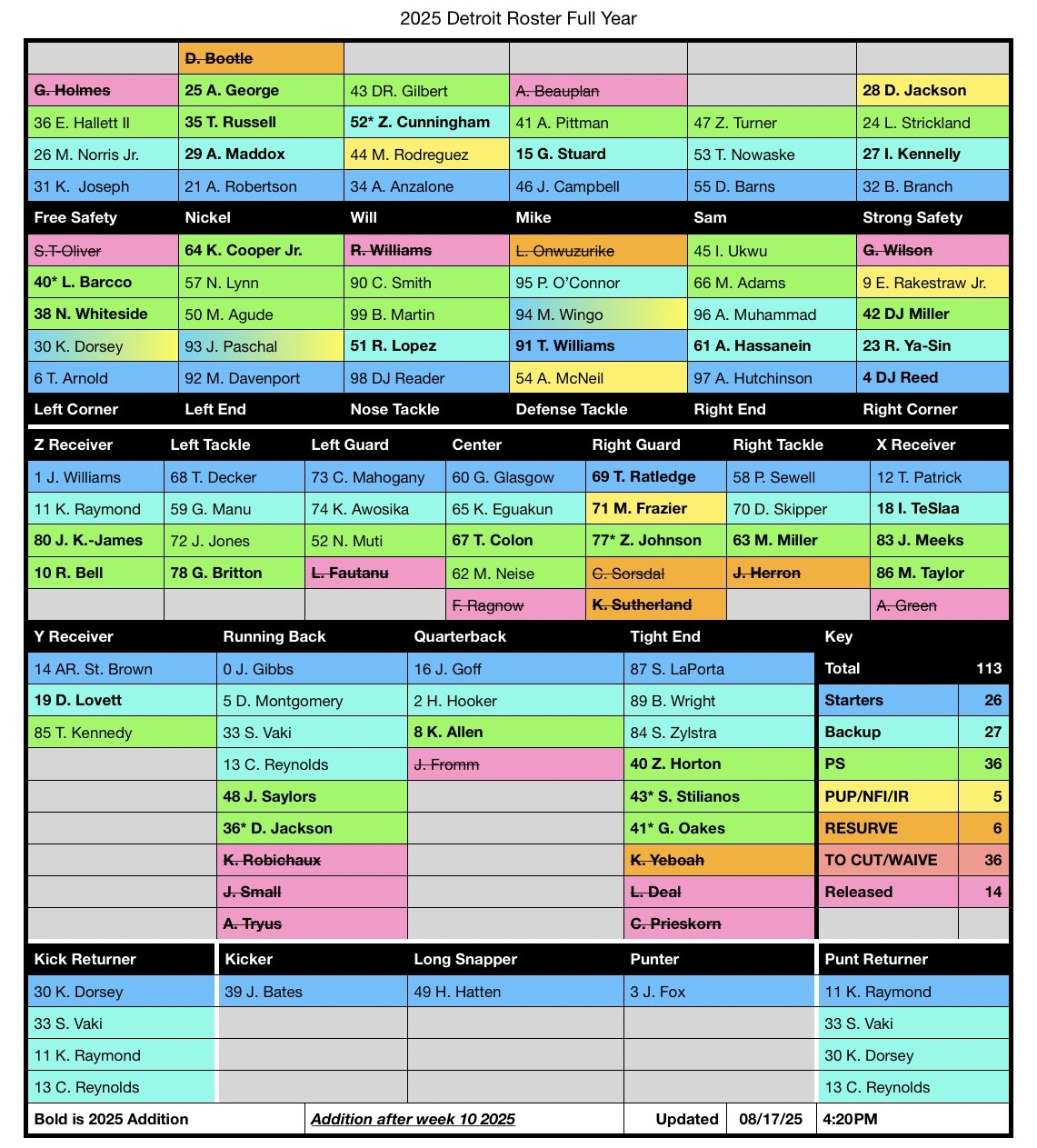 Heres the FULL 2025 roster so far. Including cuts/ waives.