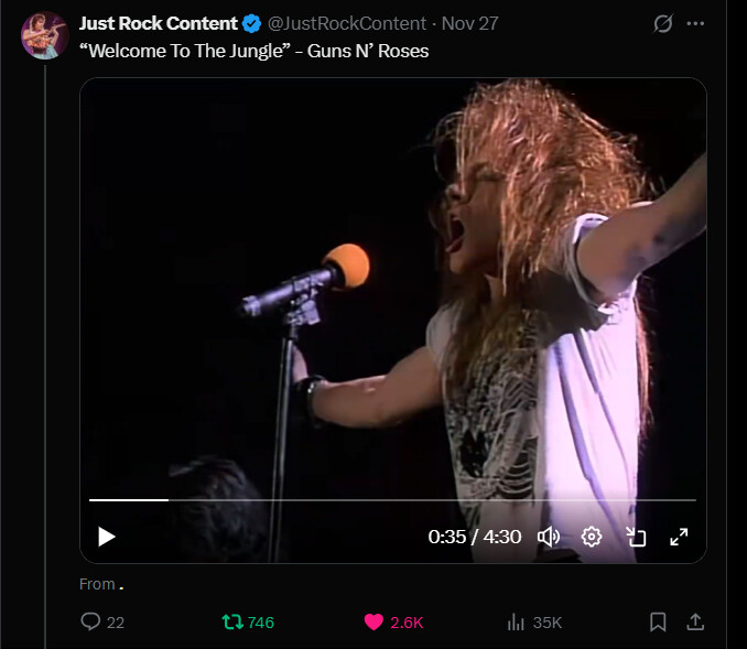 ”Welcome To The Jungle” on Just Rock Content X account.