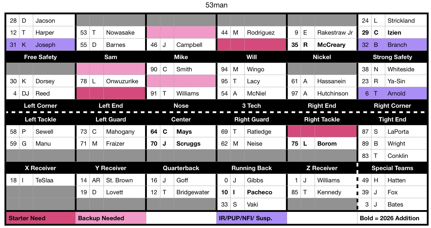 The problem i have is arguably the top 2 biggest holes the lions had on the roster day 1 of the offseason, (OT and F7) Is still the biggest holes and they have done nothing to address it.