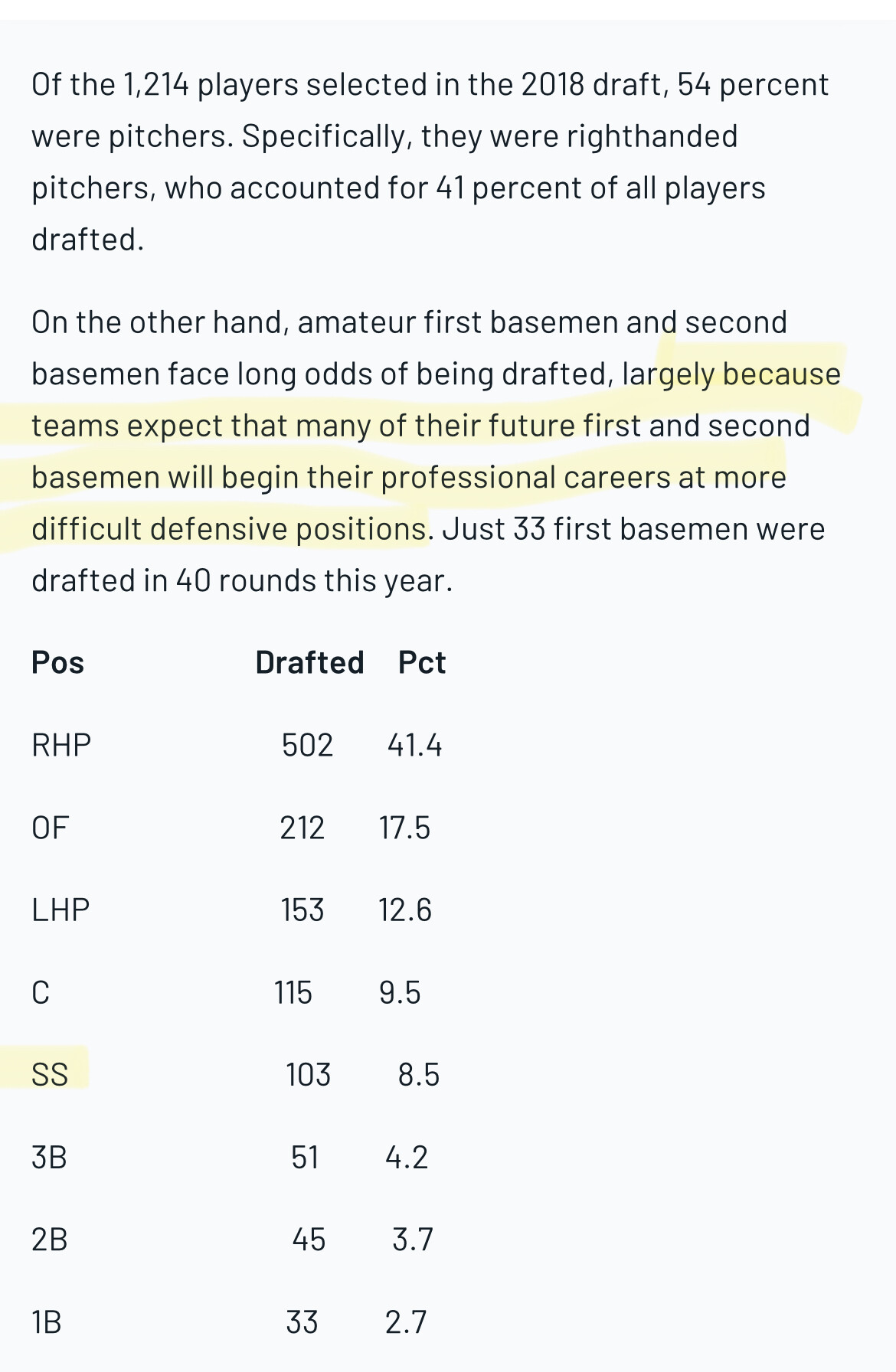 Correct. The MLB diamond is filled with former shortstops bc that is where the most athletic kids play when they are young.