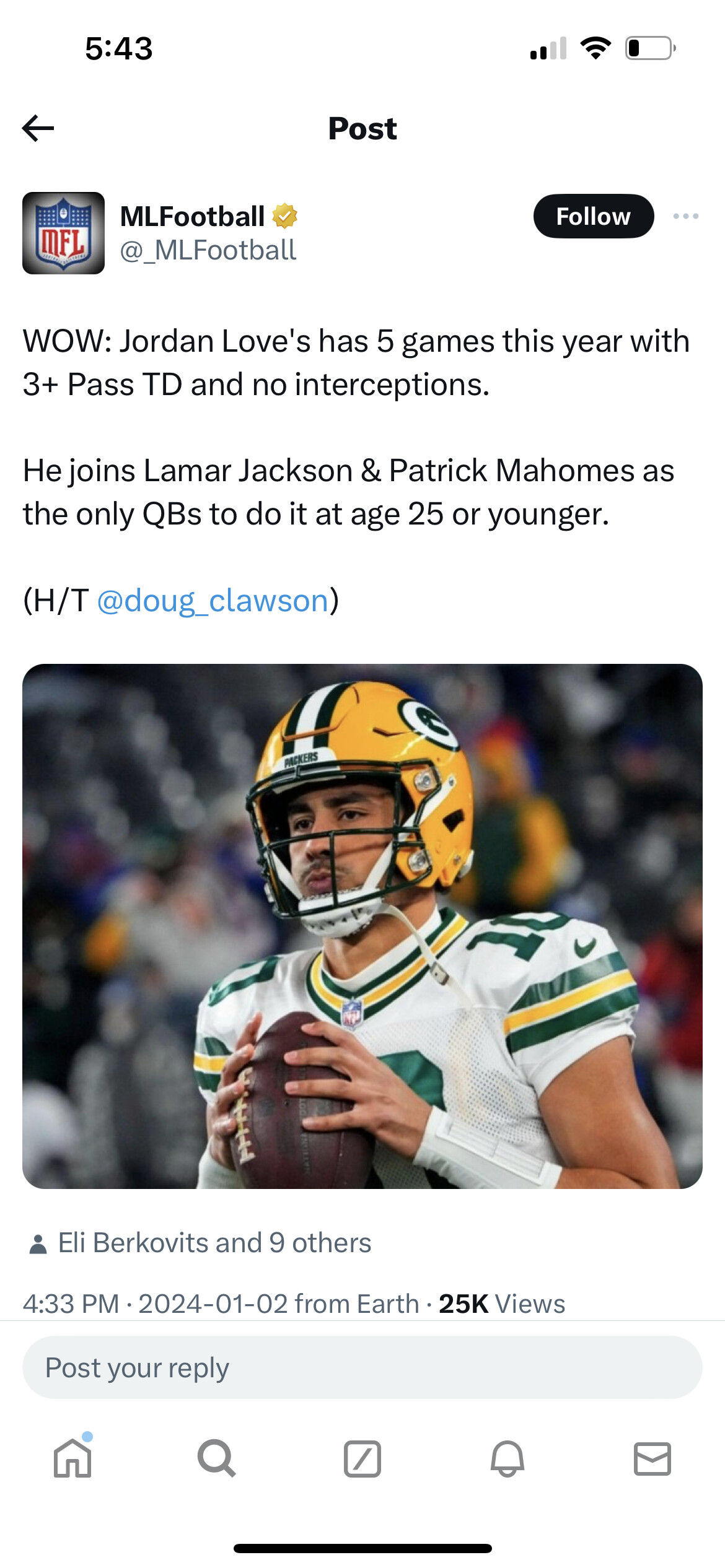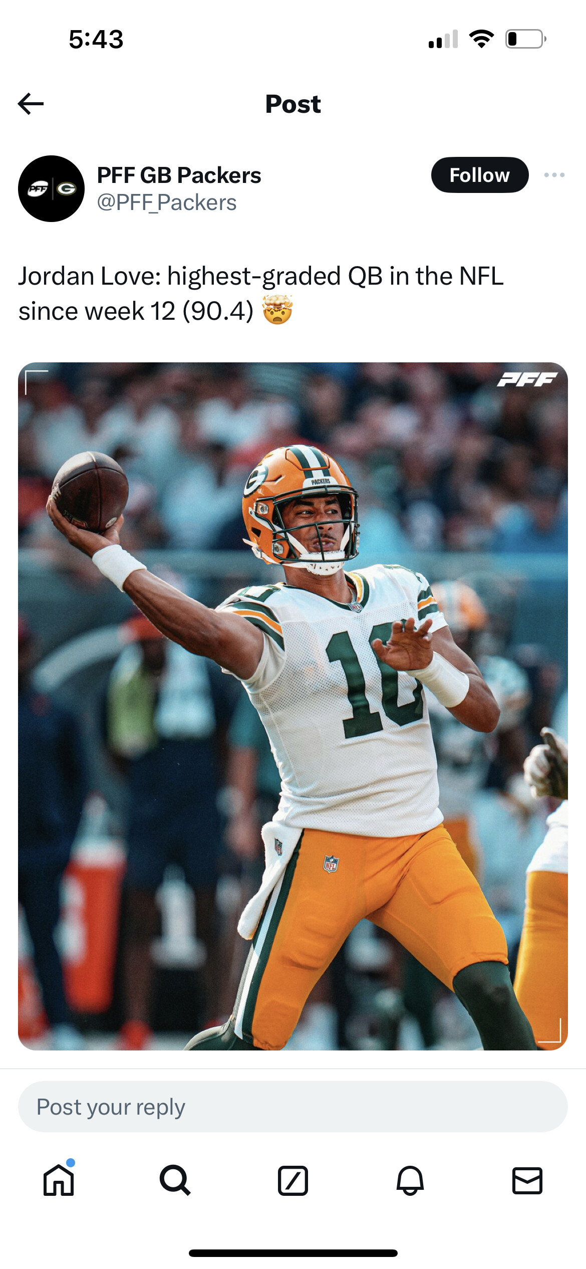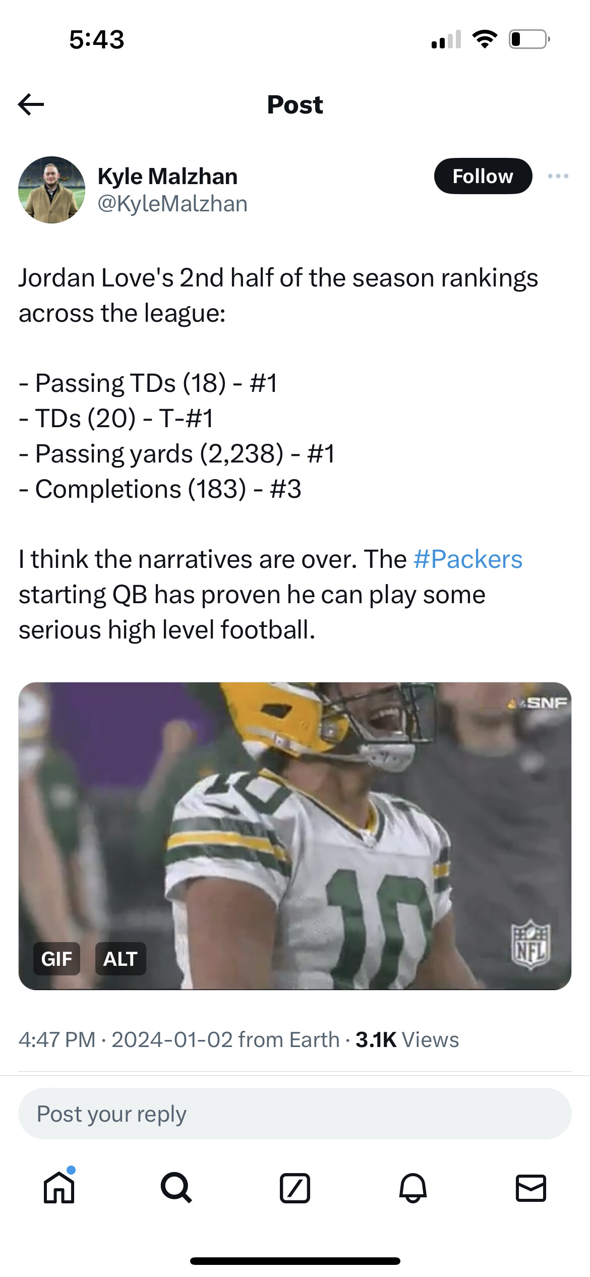 I refuse to accept, at this time, that Green Bay can move from one HOF QB (Favre) to another HOF QB (Rodgers) to a 3rd HOF QB in Love. Love also hasn’t proven he’s a tier 1 (Burrow, Allen, Mahomes, Jackson) QB as of yet.