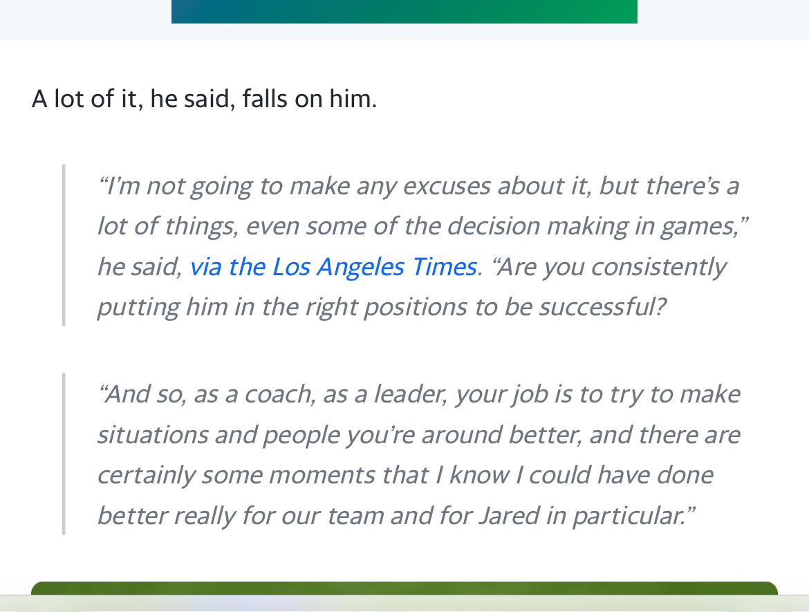 In addition…. McVay publicly acknowledged that he was part of the problem when the Rams offense took a step back.